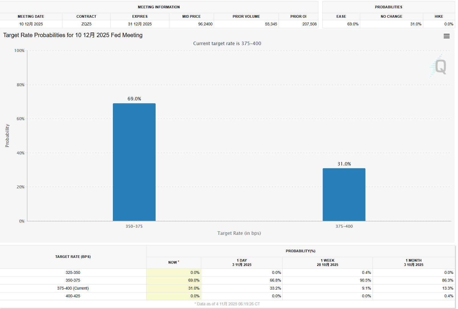 如果大家都明白流动性危机会随着政府开门解除,这一段时间AI硬件板块空头如此猖獗其实是说不通的,我觉得还是涨多了,需要技术性回调。目前AI产业景气度和美元流动性预期都没有问题,降息概率昨天还上升了。