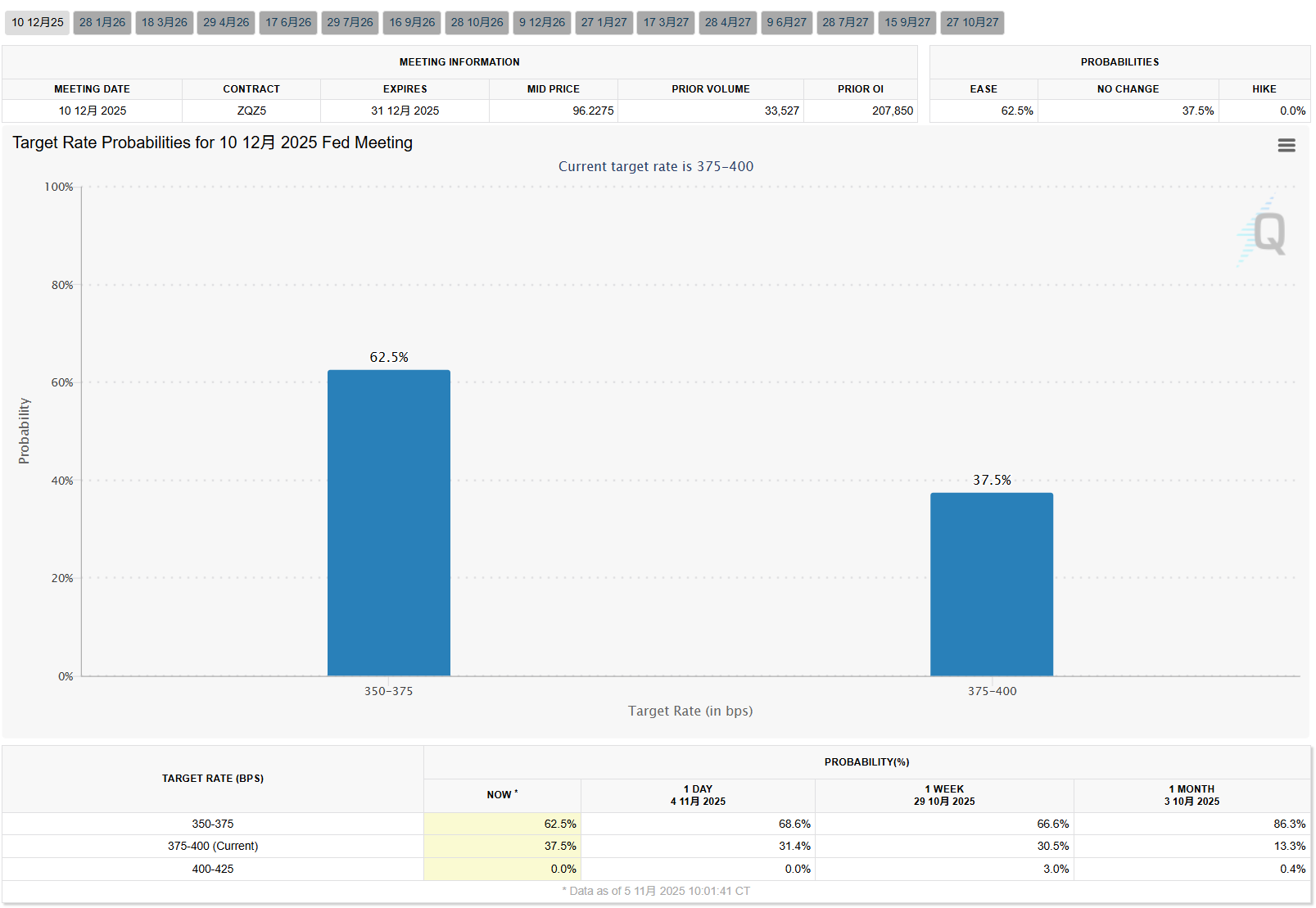 同时,美国降息概率也有所下降,不过还在60%以上: