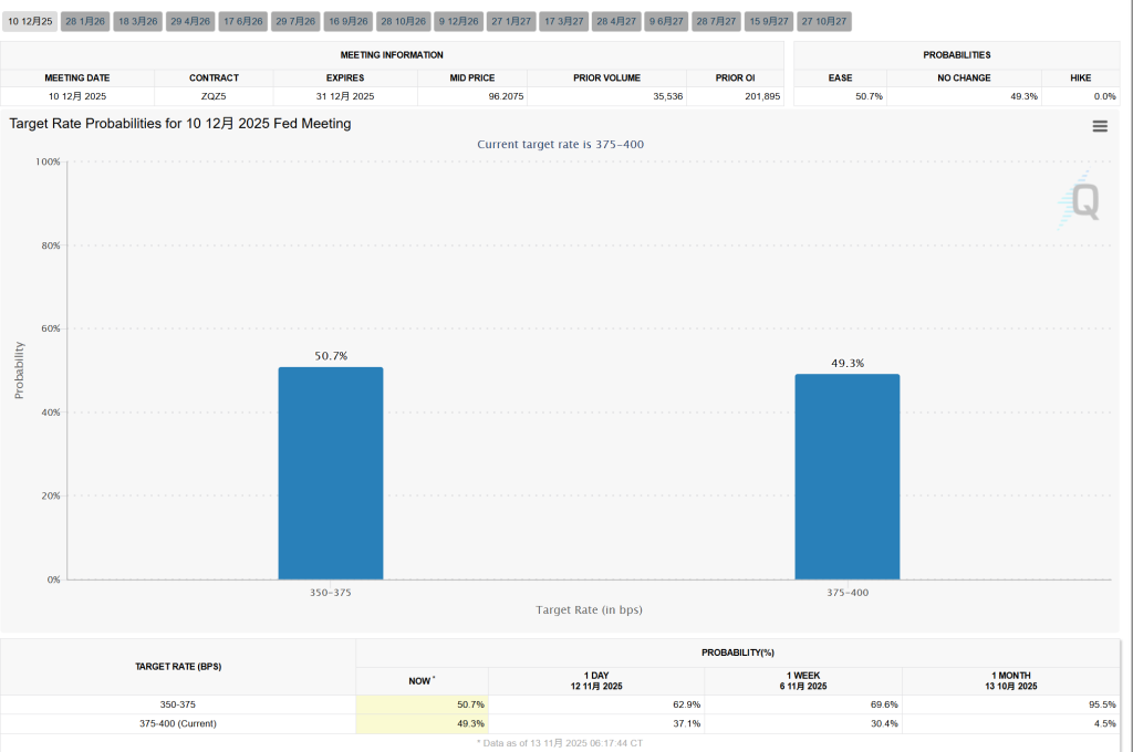 主要原因是美国因为政府开门太晚,所以无法搜集并提交10月份的失业率和CPI数据。而下一次FOMC议息会在12月9日召开,在各位委员手里的可能只有9月份的CPI和失业率数据,再加上鲍威尔之前威胁过,如果没有数据可能影响降息,说这是“雾中开车”。