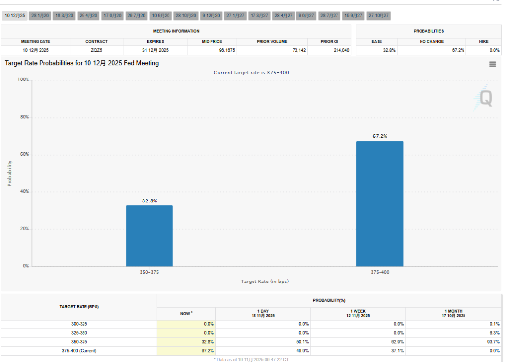 第二个对降息概率的打击是美国劳工统计局跳票(美国政府是真的不靠谱),说将不会发布10月非农就业报告,而是把相关的就业数据纳入11月报告。11月非农就业报告将于12月16日发布,比原计划晚了一个多星期,并且是在美联储今年最后一次会议(12月10日)之后公布。