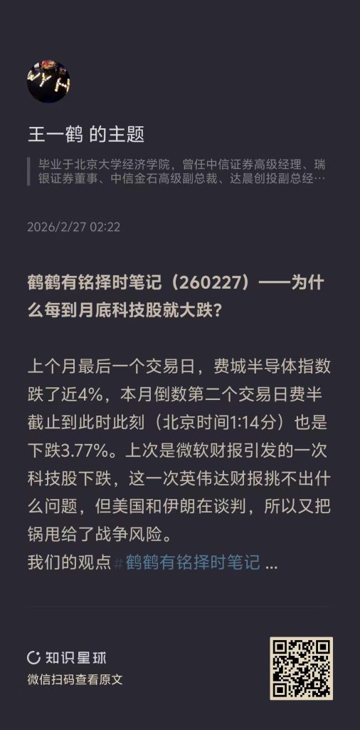 今天的择时笔记《为什么每到月底美股就大跌?》我会更新在星球上,欢迎各位扫码进入星球查看。
