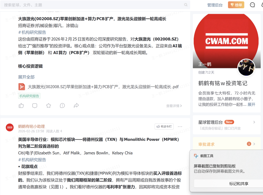 - 机构内部研究报告和笔记分享(日更,覆盖我们看好的赛道所有的核心研究报告)